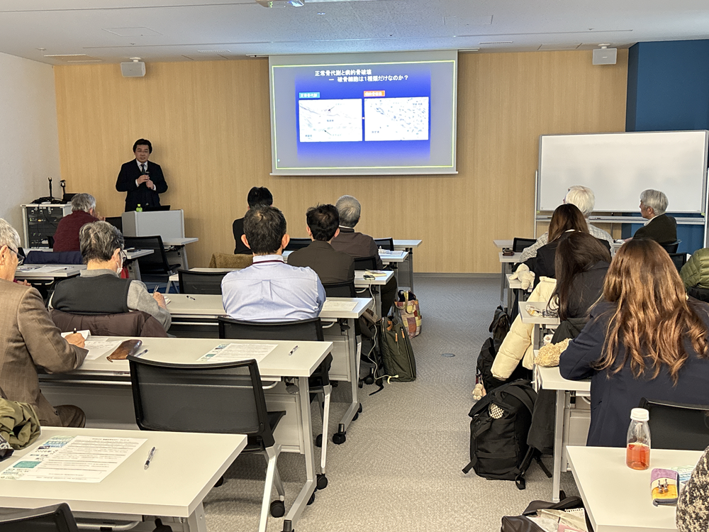 今回のセミナーでは、体の中の様々な細胞について、特殊な顕微鏡を使って撮影した実際の映像と共に視覚的にご紹介いただきました。関節リウマチにも深く関わる骨を破壊する破骨細胞をはじめ、肺や肝臓内の細胞の動きなどに関して、実際に細胞そのものを見ることで明らかになってきた最新の研究成果を数多くご紹介いただきました。